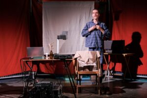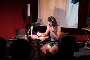 Makers die op dit moment in het Makershuis van Karavaan aan het werk zijn laten een work-in-progress presentatie zien, een korte pitch of lezen een paar scènes voor. Daarnaast zie je in DRUKWERK ook altijd een korte, affe voorstelling van een jonge theatermaker.